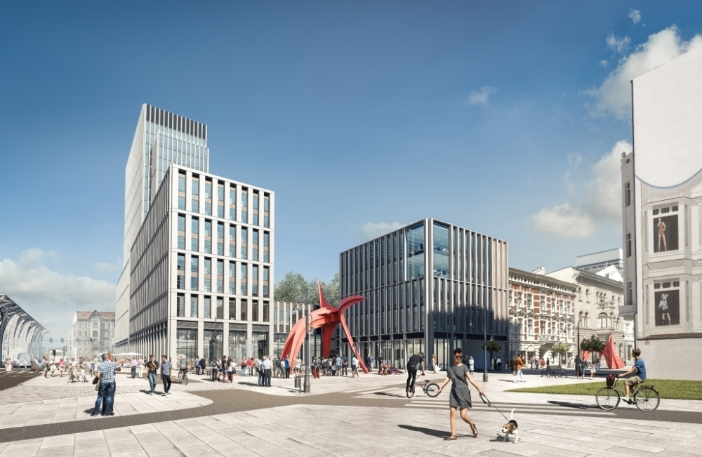 The building will be located in the center of Łódź, between Mickiewicza, Piotrkowska and Kościuszki streets. This place will allow easy access to public transport, as well as to the nearby WZ route. Hi Piotrkowska 155 is a modern complex of the highest standard combining office, hotel and service functions. The facility offers over 18,000 sq m of office space for lease on 19 floors and almost 140 parking spaces on two underground levels. The standard of the facility's finishes includes: suspended ceiling, raised floors, BMS, air conditioning and two-sided power supply. The Hi Piotrkowska complex consists of two office buildings and the Hampton by Hilton hotel, which makes it a multifunctional facility on the map of Łódź. The author of the Hi Piotrkowska project is the PRC Architekci studio.