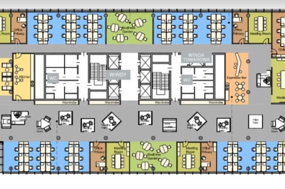 The building will be located in the center of Łódź, between Mickiewicza, Piotrkowska and Kościuszki streets. This place will allow easy access to public transport, as well as to the nearby WZ route. Hi Piotrkowska 155 is a modern complex of the highest standard combining office, hotel and service functions. The facility offers over 18,000 sq m of office space for lease on 19 floors and almost 140 parking spaces on two underground levels. The standard of the facility's finishes includes: suspended ceiling, raised floors, BMS, air conditioning and two-sided power supply. The Hi Piotrkowska complex consists of two office buildings and the Hampton by Hilton hotel, which makes it a multifunctional facility on the map of Łódź. The author of the Hi Piotrkowska project is the PRC Architekci studio.