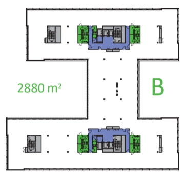Complex of two 7-storeys buildings offering a total of approximately 37 000 m2 of the modern .The second phase of development of around 18 5000 m2 was delivered in 2011, together with 300 underground parking spaces. The office space in office complex was designed with effective arrangement primarily in mind. The typical floor plate of around 2 700 m2 can be arranged as an open-space plan as well enables a customized interior design. The office space features the highest contemporary standards with suspended ceilings, high class air conditioning, modern building management, openable windows and two independent supplies of electricity all being included in a standard fit-out.