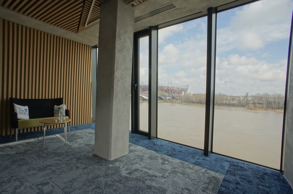 Modern office and hotel complex, situated on the banks of the Vistula River, offering over 11 000 m2 of office space. Original architectural form with an exceptional view of the Vistula River and glass façade will provide future tenants with a unique and comfortable workplace. Dedicated to the office is almost 100 parking spaces and underground. Situated in a prestigious location in Warsaw provides close proximity to the town center and the same number of public transport and excellent range of shopping and service.