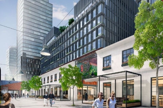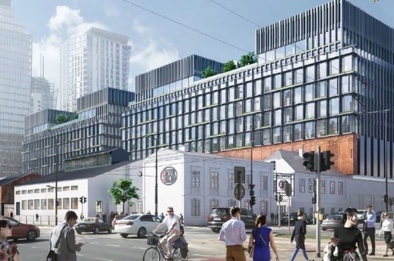 The project office and service class A, located in the heart of the Will. The property has been designed in combination of tradition and modernity, fitting into a post-industrial, historical character of the district, while maintaining a modern space and office services. On three floors will be retail and service space over which the 6 levels of office floors will be arranged. 3 underground floors will be up to 700 parking spaces, acting first in Poland, automatic underground parking. The composition of the monument combined with modern office and commercial space the layout of partially roofed streets, integrally sealed by modern gleaming glass façade.