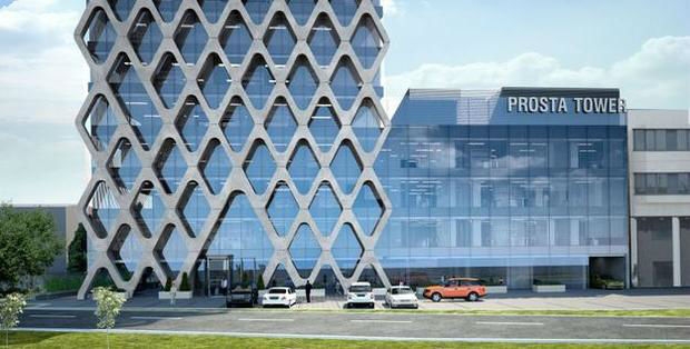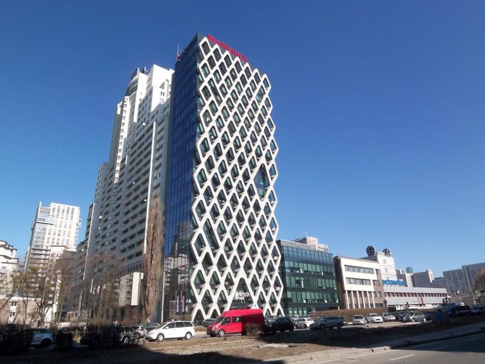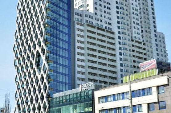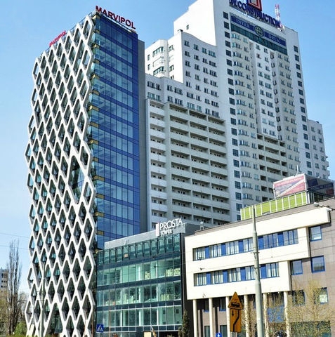 A modern office building is located near The Daszyński Roundabout, the new office center of Warsaw. On 18 floors the building will offer over 5,300 square meters of office space for rent. The property is characterized by the glass facade of the front, concrete facade diamond-shaped. The building is equipped with the latest air conditioning systems and fire protection, integrated management and monitoring system of the building. The property has a 5-level underground parking, which provides tenants with 74 parking spaces.