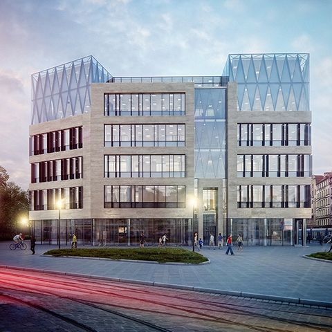One of the most modern buildings in Wroclaw, which has 6 thousand. square meters of office space on 7 floors. The building was built to the highest standard and modern design increases the attractiveness of the investment. A striking glass façade of the top floor emphasizes the unique character of the building and creates a unique space for office space. Direct location at the train station Wroclaw Central makes very easy to reach by public transport. The underground garage offers 28 parking spaces. Tenants will be able to arrange any surface.