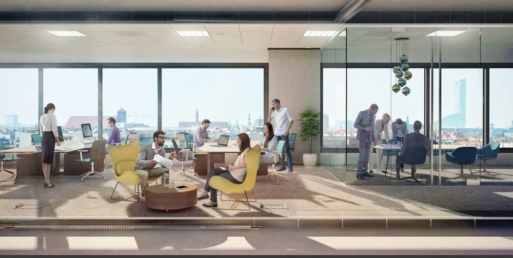 The second office building, which was created as part of the complex, located in the center of Wroclaw This is a modern building offering 21 000 sqm of modern office space, the main advantages are flexibly designed surfaces to allow any arrangement and availability both for large tenants, as well as for smaller offices. Bulding is located in the neighborhood streets Trzebnicka and Jedności Narodowej which are the main thoroughfares of the city; a short distance from the city center (2.5 km from Market Square). Comfort communication is possible thanks to the tram connections, bus and rail.