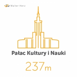 Pałac Kultury i Nauki to 42- kondygnacyjny budynek zabytkowy o łącznej wysokości 237 m.