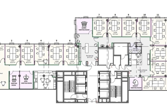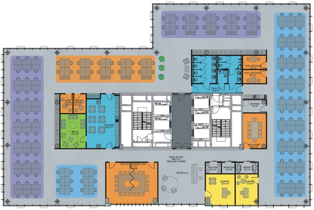 • Powierzchnia typowego piętra: od 1 500 m² do 3 000 m²