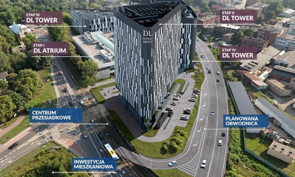 DL Tower Katowice Korfantego zlokalizowany jest w silnie zurbanizowanej części miasta