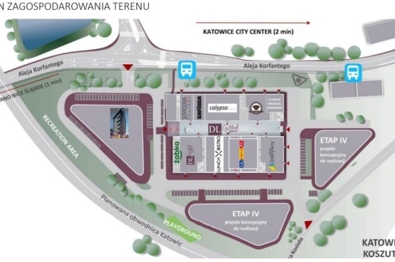 Katowice tj. w śródmieściu. W promieniu do 2 minut znajdują się rozpoznawalne w skali