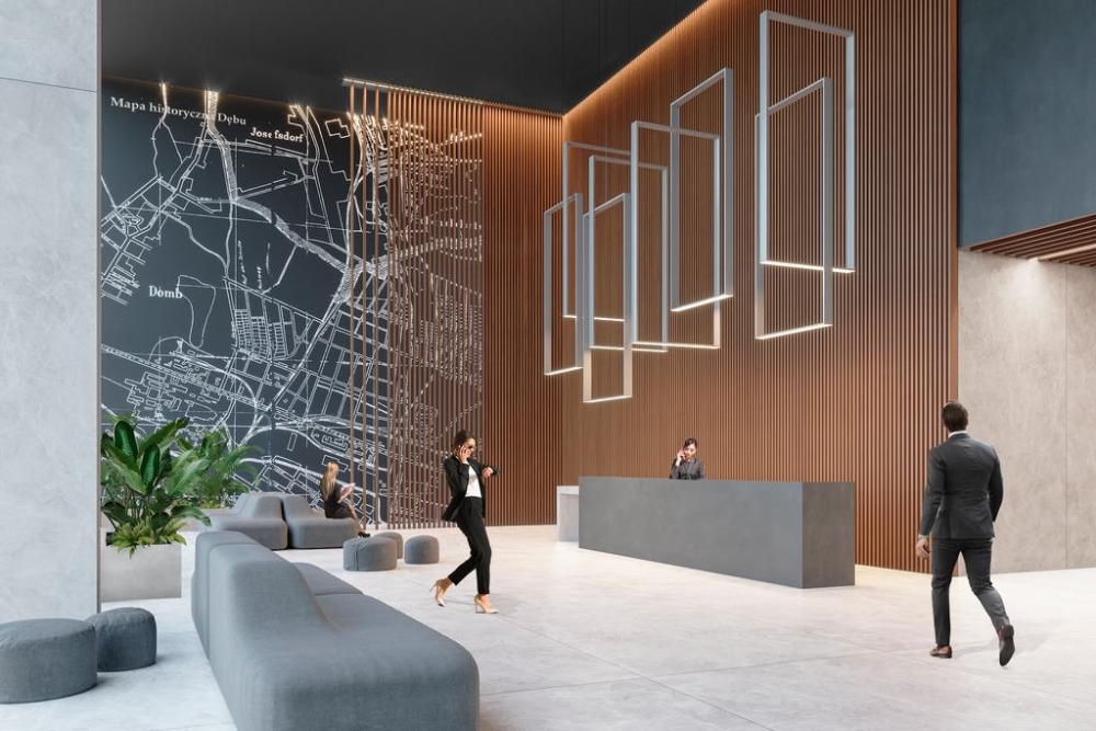 Nowopowstający budynek biurowy klasy A zlokalizowany tuż przy centrum handlowym Silesia City Center, na terenach dawnej kopalni węgla Gottwald. Elewacja biurowca nawiązywać będzie do historycznej, ceglanej zabudowy Dębu. Całkowita powierzchnia biurowa do wynajęcia to ok. 22 tys. m kw. Budynek posiadać będzie regularny kształt, a powierzchnia każdego z 14 pięter obiektu wyniesie 1 625 m kw. Na parterze znajdzie się m.in. Bar Resto. Na 3 kondygnacjach podziemnych mieścić się będzie garaż podziemny obejmujący 437 miejsc postojowych. Dodatkowo na terenie obiektu będzie parking naziemny dla gości, stacje ładowania dla samochodów elektrycznych oraz liczne udogodnienia dla rowerzystów. Całość inwestycji przewiduje powstanie 3 budynków biurowych.