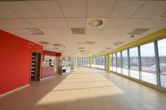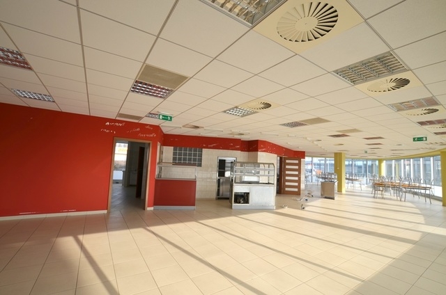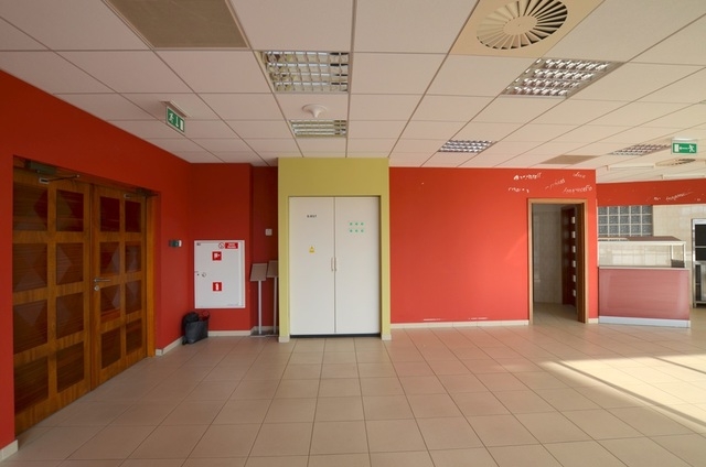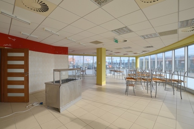 Powierzchnia usługowa w kompleksie biurowym. Lokalizacja zapewnia dogodny dostęp do komunikacji miejskiej oraz sprawny dojazd samochodem na lotnisko i do Centrum miasta. Lokal znajduje się na parterze budynku. Posiada dwa, niezależne wejścia i własną wentylację. Przeszklona ściana zapewnia doskonałe doświetlenie powierzchni. Niebanalna bryła budynku i ciekawy układ powierzchni stwarzają możliwość ciekawej aranżacji wnętrza. Lokal wyposażony jest w rozbudowane zaplecze kuchenne m. in.: szafa mroźnicza i chłodnicza, piec konwekcyjny, frytownica, zmywarka, zlewy, stoły, krzesła, klimatyzator. Idealny na działalność gastronomiczną.