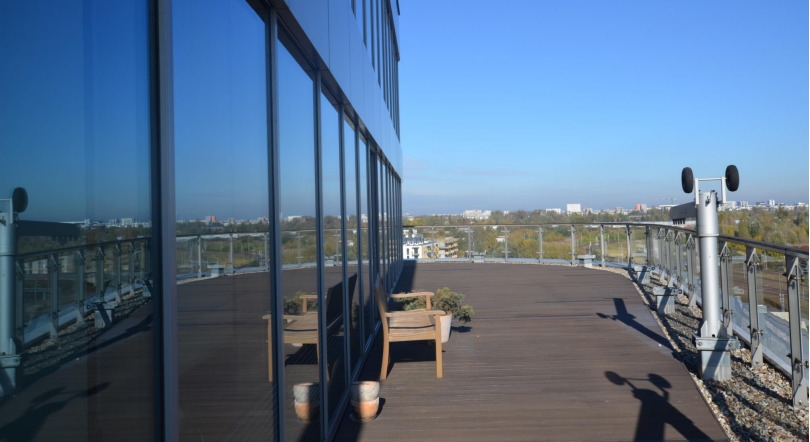 Kompleks oferuje także szeroki wachlarz udogodnień, w tym restaurację i punkty usługowe na parterze, a także szybkie windy i nowoczesne systemy klimatyzacji i wentylacji. Duże tarasy na 8. kondygnacji, z możliwością aranżacji zielonych stref wypoczynku, zapewniają unikalną przestrzeń relaksacyjną z widokiem na panoramę Warszawy.