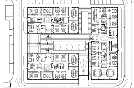 Elewacje zewnętrzne są podzielone smukłymi oknami, natomiast elewacje od strony dziedzińca są w całości przeszklone, co zapewnia optymalny dostęp światła dziennego i komfortowe warunki pracy. Wysoki standard wykończenia budynków oraz zastosowane rozwiązania techniczne, takie jak klimatyzacja, kontrola dostępu, okablowanie elektryczne, komputerowe i telefoniczne, gwarantują najemcom wysoką jakość użytkowania przestrzeni biurowej.