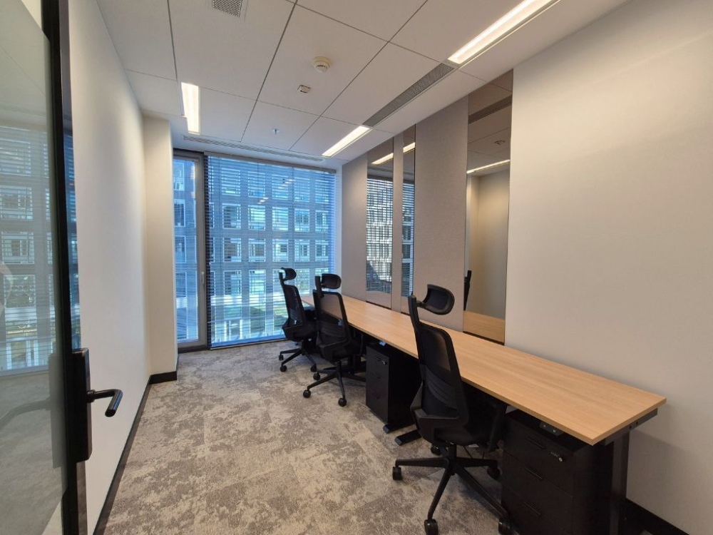 Zapraszamy do zapoznania się z ofertą gabinetu z 3 biurkami, w prestiżowym biurowcu w sąsiedztwie Parku Pola Mokotowskie.